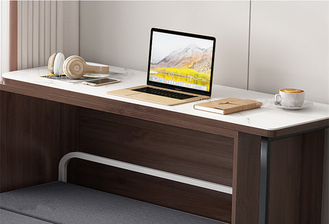 - UPDATE YOUR WORKSTATION: This unique contemporary L-shape computer desk with a folding bed cabinet creates an ideal workspace in any room .