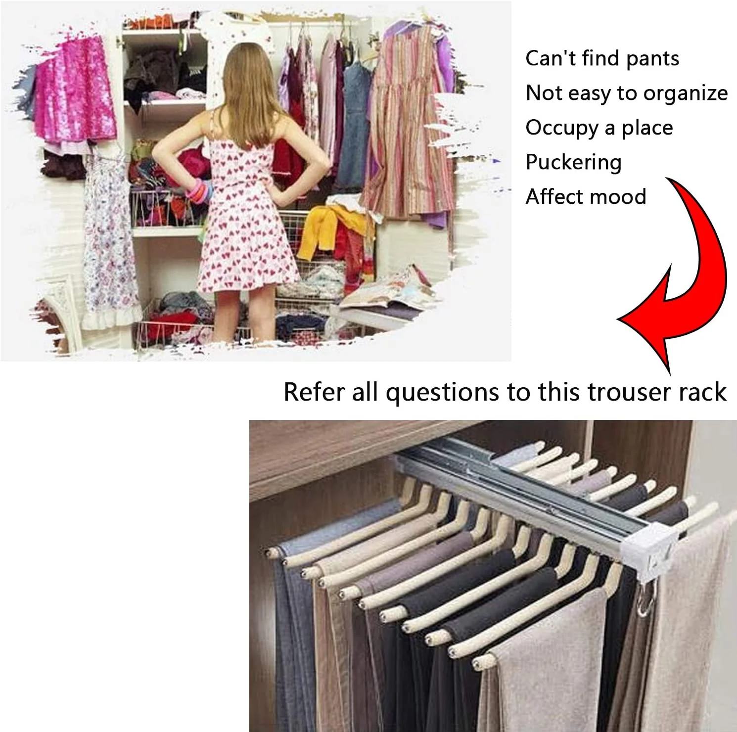 - Damping Buffer Slide Rail - The Multiple Pants Rack can be pulled out completely with the damping buffer slide rail ,a cushioned rebound effect for better silence at the bottom.