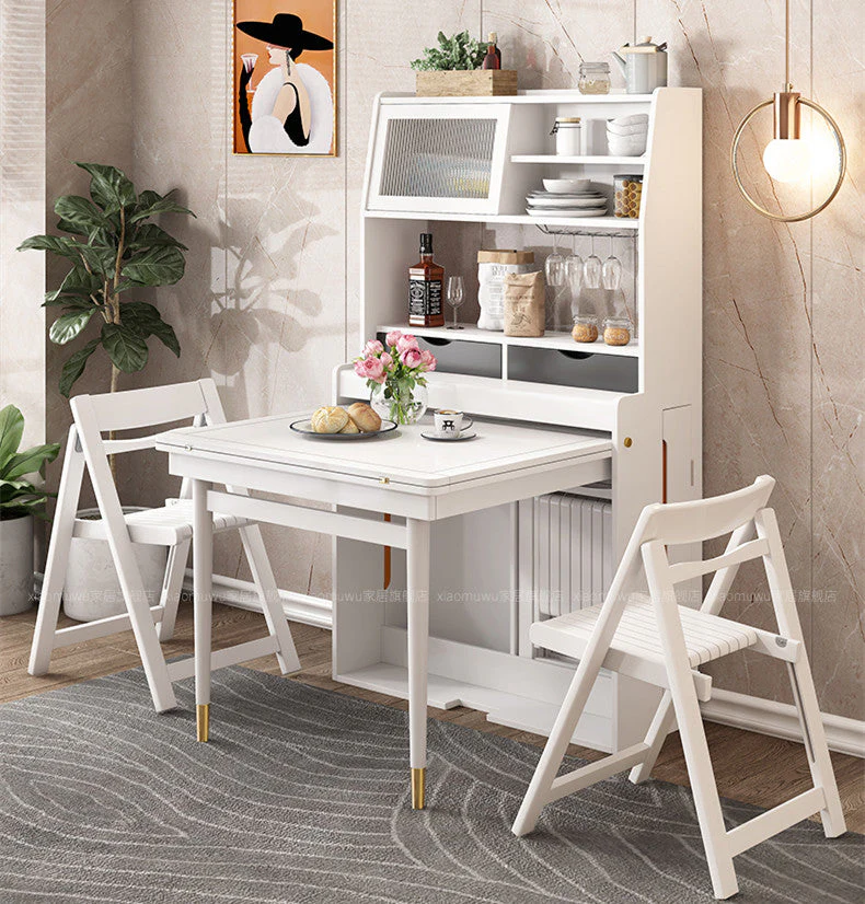 Space Saving Foldable and Extendable Side Table with Hutch Cabinet